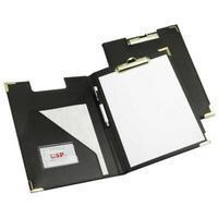 Masters Conference Folder with Clipboard. High quality leather look conference folder with a clipboard to hold loose papers securely, pen holder, document section, business card pocket & gilt corners. Colour - Black.