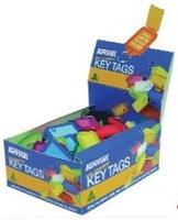 Kevron plastic clicktags with 35x22mm insert card. Cover clicks to secure insert. 19mm stainless steel keyring. Assorted.